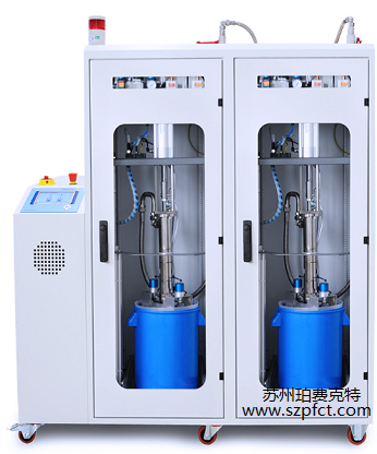 压盘泵+计量系统(高粘度): 改型设备主要针对于高粘度胶水的高精度计量要求:用高压缩比的压盘泵供料,将胶水输送至高精度的计量泵。